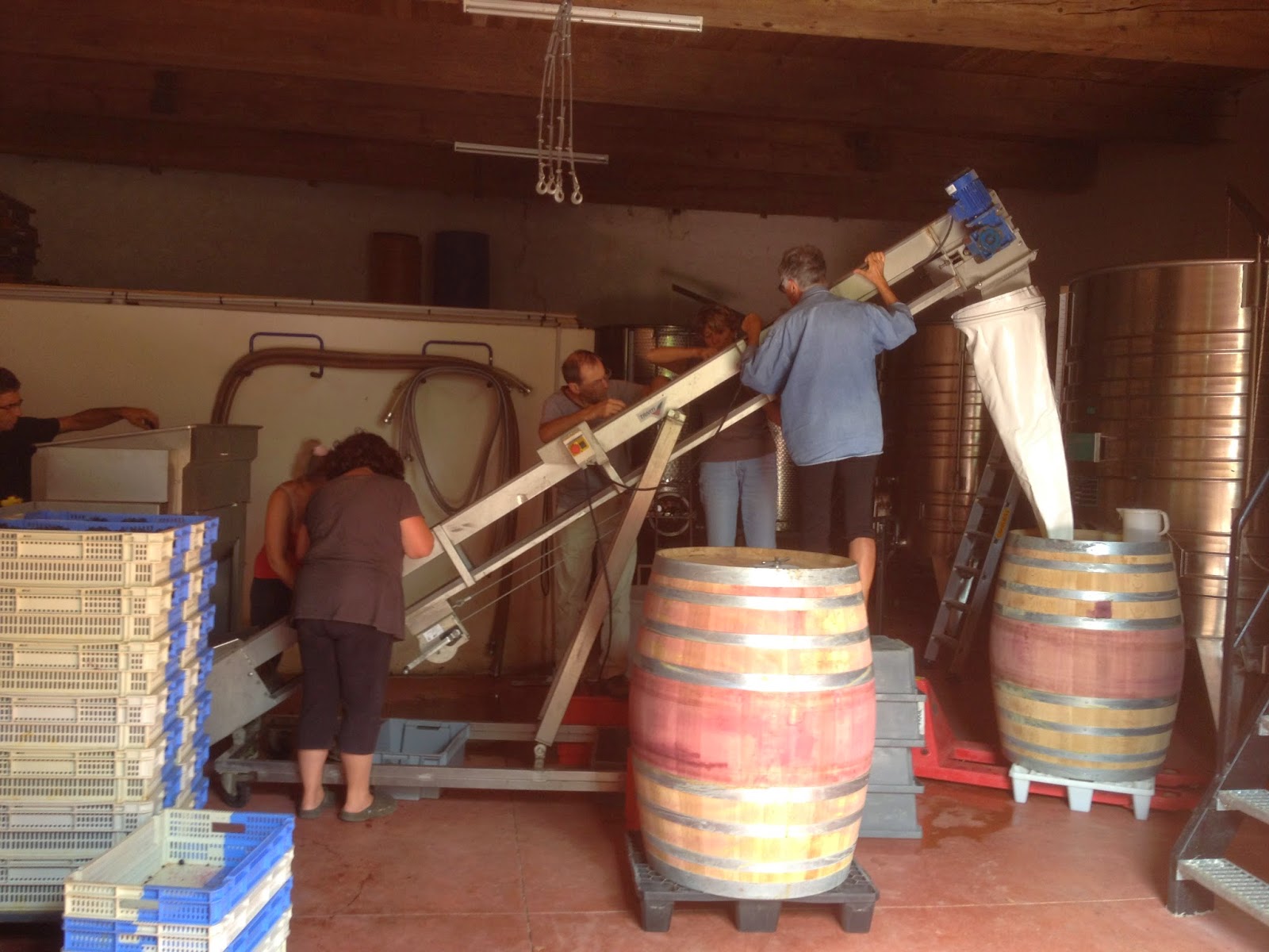 - 3 barriques de 4 HL, destinées à une vinification intégrale (cf octobre 2013) vont accueillir la vendange ( environ une tonne de raisins égrappés, foulés et triés).